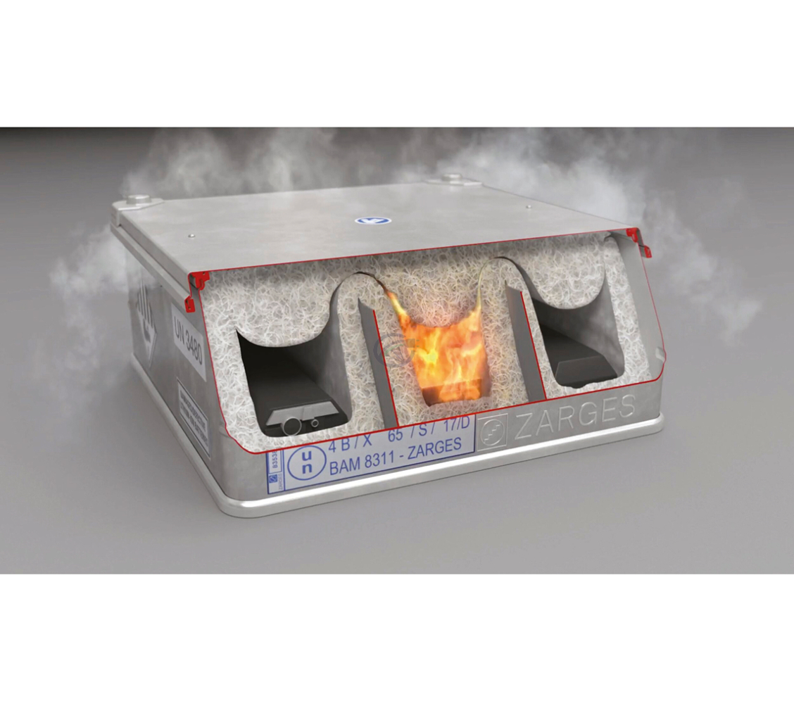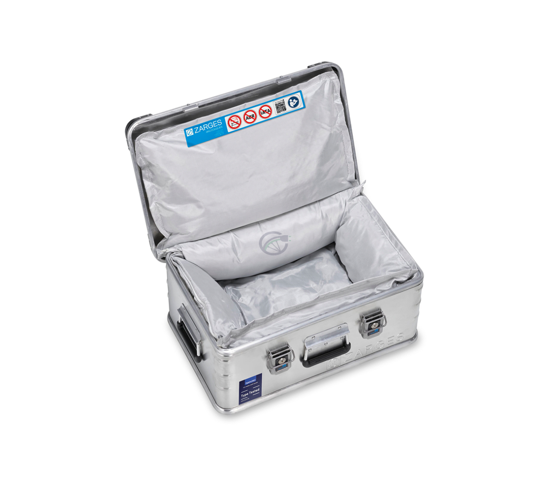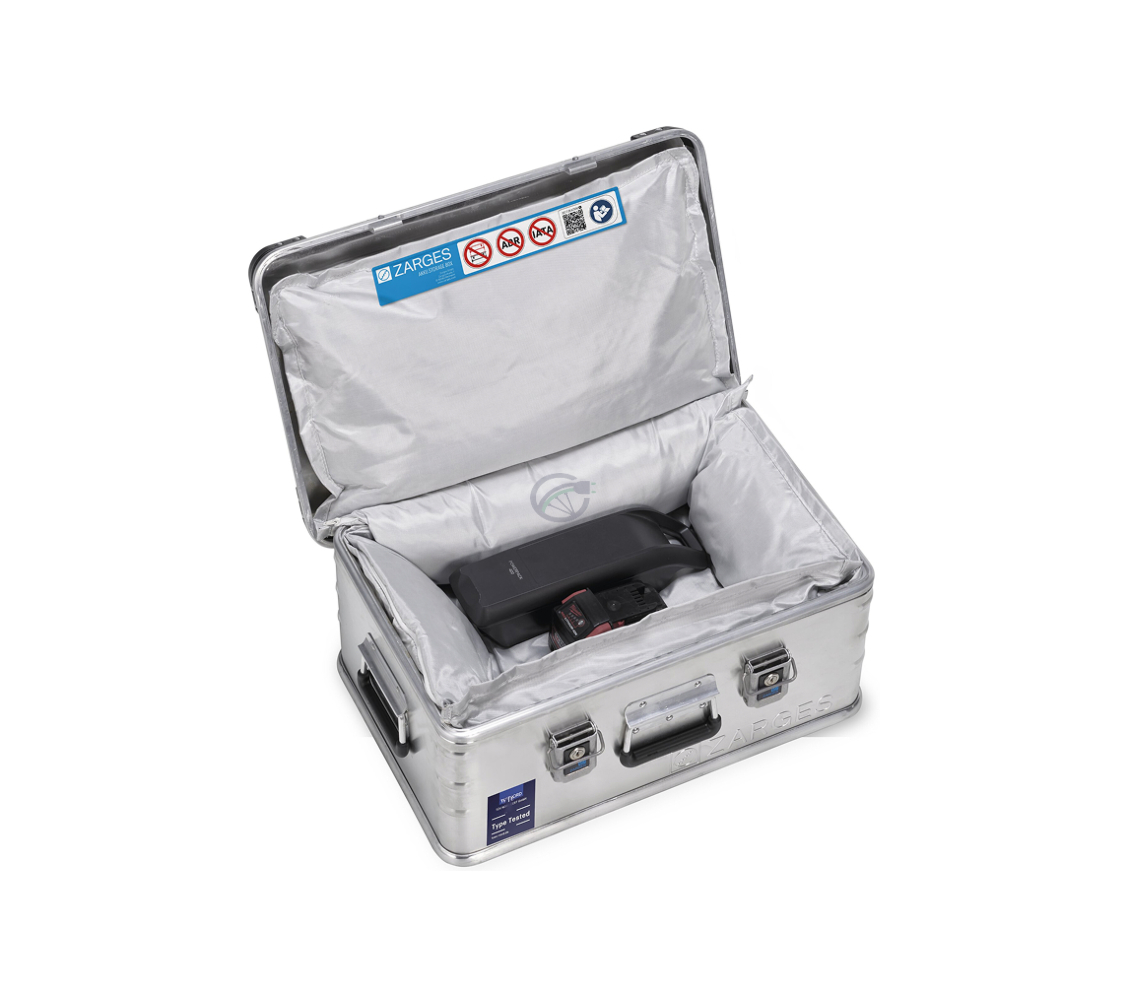 La caja ignífuga ZARGES K 470, con una capacidad de 42 litros, es una solución segura y fiable para el almacenamiento de baterías de litio. Gracias a su resistente construcción de aluminio y a la tapa que cierra herméticamente, la caja ofrece una buena protección contra influencias externas, mientras que las propiedades ignífugas proporcionan mayor seguridad durante el almacenamiento.